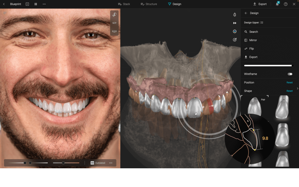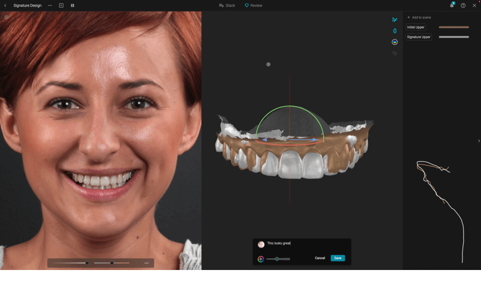 Incorpora datos de escáner, CBCT y movimiento y amplía tu diseño de sonrisa a 3D.