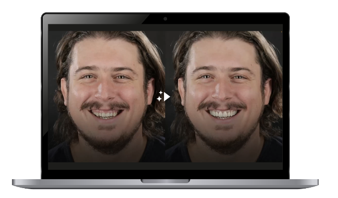 Genera 30 vídeos del antes y después fotorrealistas al mes, usando tu diseño y la referencia facial del paciente.